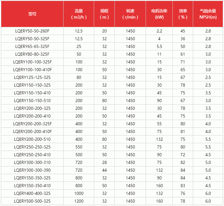 LQERY高效節(jié)能導熱油泵性能參數(shù)表:
