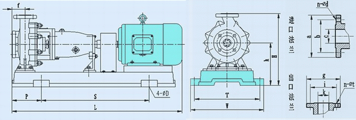 IHF型臥式化工離心泵外形結(jié)構(gòu)圖: