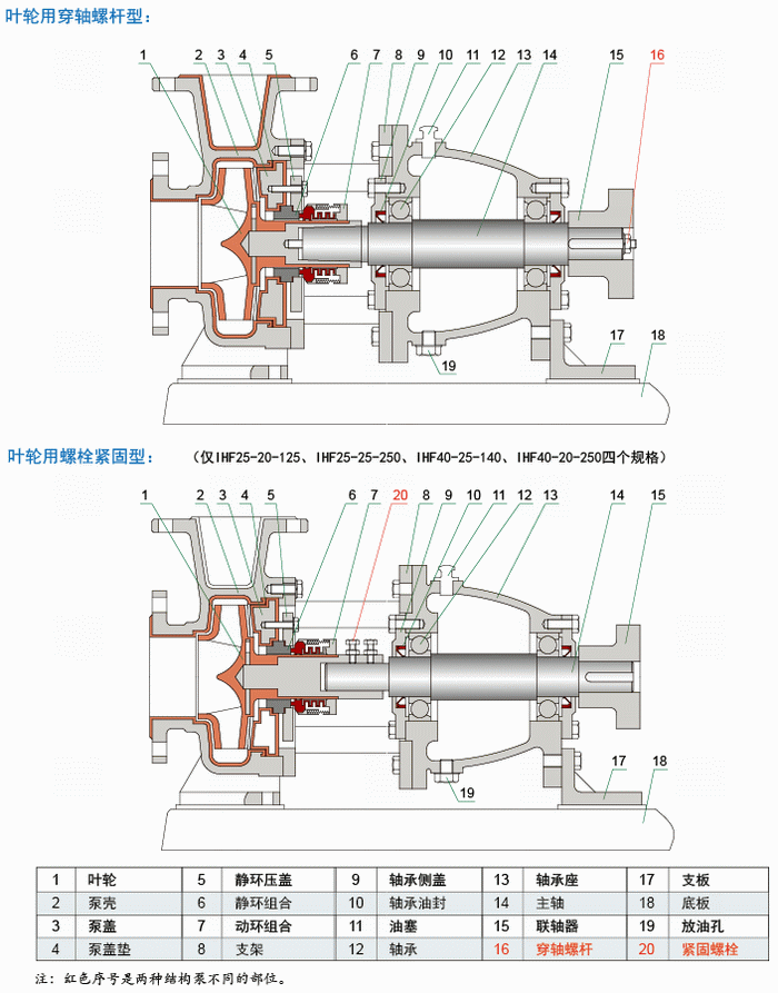 IHF型臥式化工離心泵零件組裝圖: