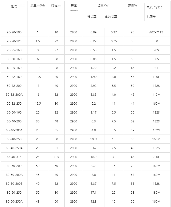 RY型防爆導(dǎo)熱油泵性能參數(shù)表:
