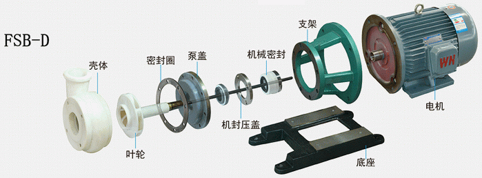 FSB-D型氟塑料合金離心泵結(jié)構(gòu)特點(diǎn):