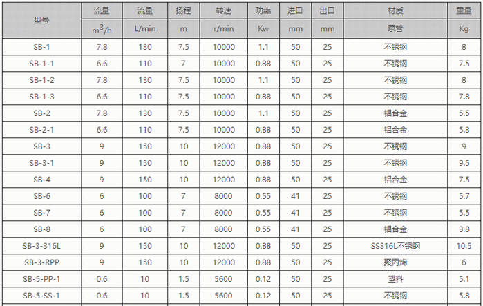 SB電動(dòng)油桶泵性能參數(shù)表: