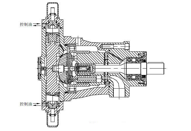 LCY14-1B變量軸向柱塞泵是靠外控油壓(≥7MPa)控制變量,采用P型滑閥機能的三位四通換向閥操縱,可以保證在空負荷運轉(zhuǎn)時,處于零偏心位置,零位對中的精度可達千分之五以內(nèi)。采用這種變量型式可以省去某些液壓系統(tǒng)中大流量的換向閥,因而簡化了液壓系統(tǒng),同時由于采用油泵直接換向,可以減小液壓系統(tǒng)(特別是高壓系統(tǒng))的沖擊。該泵特別適合于閉式油路使用。當閉式油路兩向需要不同的流量時,可以分別采用調(diào)節(jié)螺桿調(diào)整限程活塞的位置來達到,當該泵使用在開式油路中時,根據(jù)要求可以將某一限程活塞調(diào)整至極限位置,使泵的一向流量為零。
