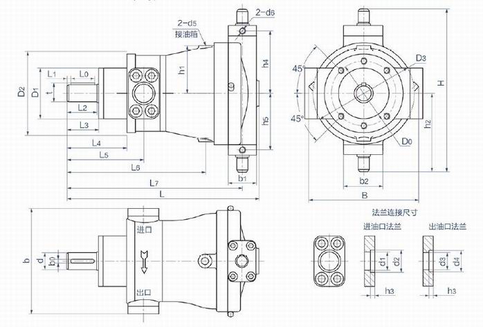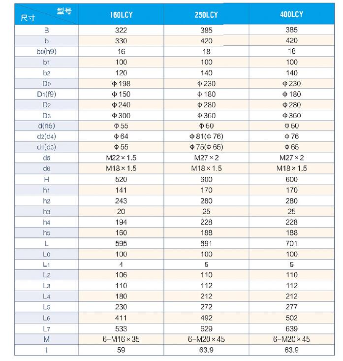 LCY14-1B變量軸向柱塞泵外形尺寸表: