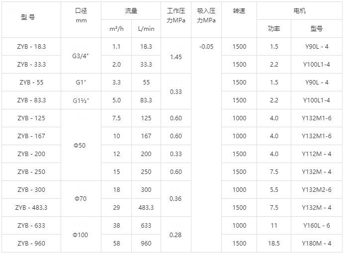 ZYB硬齒面渣油泵性能參數(shù)表: