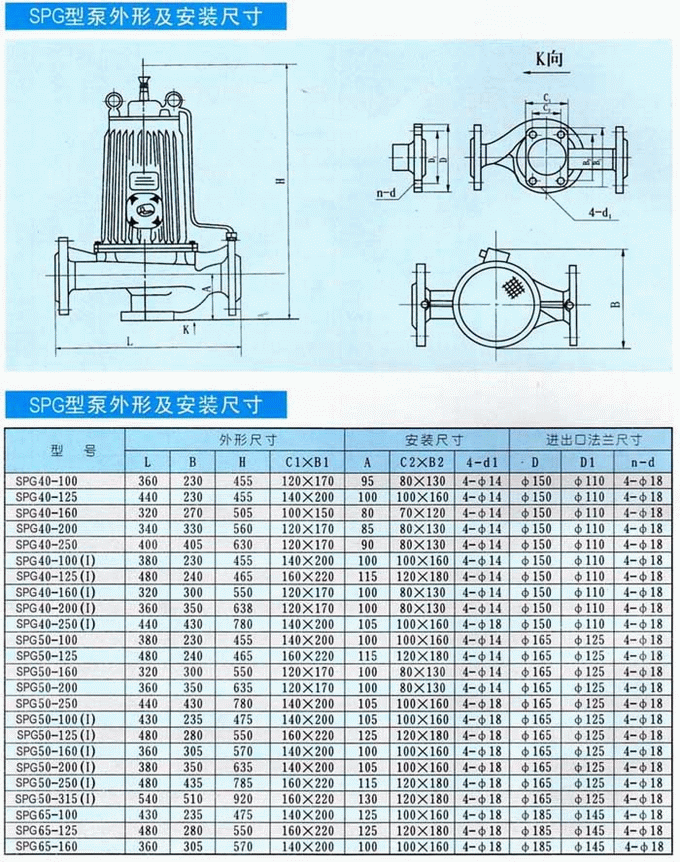 4、SPG型管道屏蔽泵系統(tǒng)高壓力1.6MPa,即水泵的吸入壓+泵揚(yáng)程≦1.6MPa。