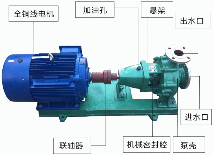 4、IH型臥式化工離心泵的旋轉方向:泵通過加長聯(lián)軸器由電動機直接驅動,從電動機端看,按順時針方向旋轉。