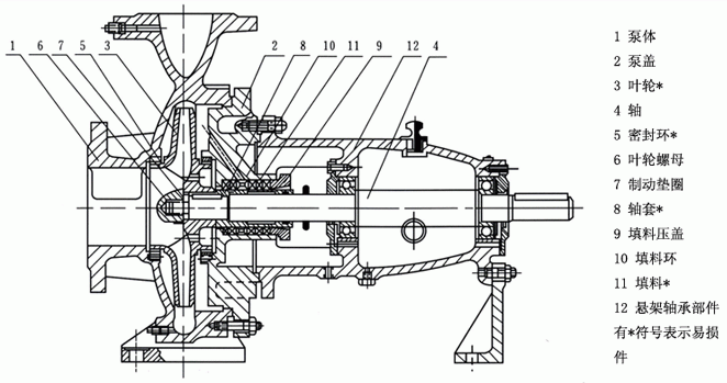 2、軸封:軸封為填料或機械密封,兩種密封泵蓋可通用;