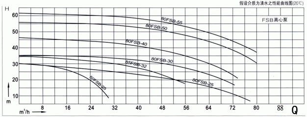 FSB-L型氟塑料合金離心泵性能曲線圖: