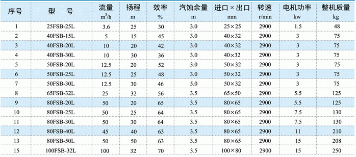 FSB-L型氟塑料合金離心泵性能參數(shù)表: