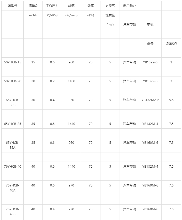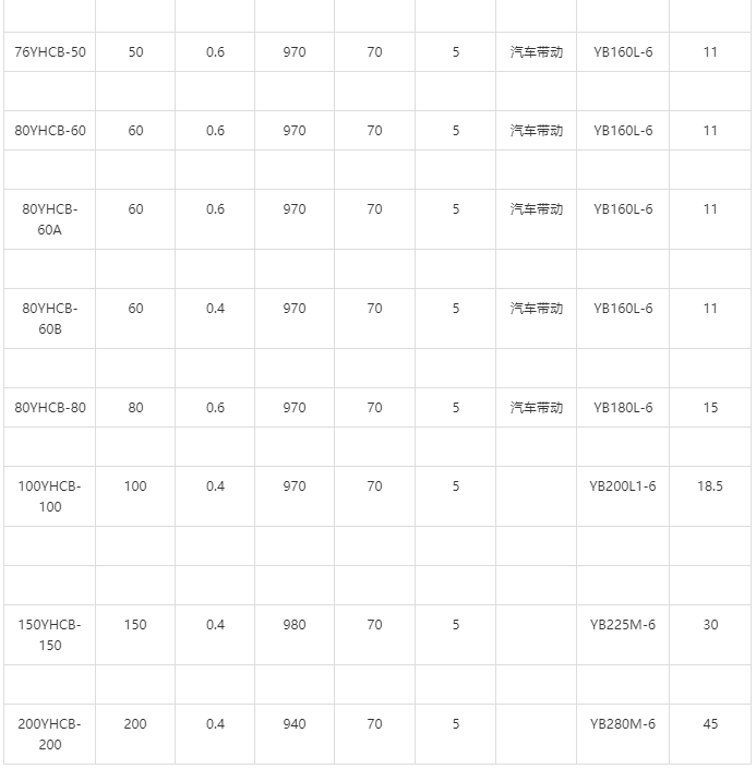 YHCB防爆齒輪油泵性能參數(shù)表:
