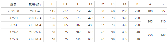 2CY齒輪式潤滑泵性能參數表: