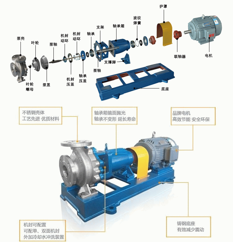 二、與IH型泵相比,HJ型泵結(jié)構(gòu)具有以下特點(diǎn):