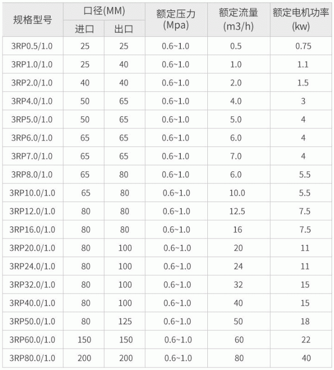 3RP凸輪轉(zhuǎn)子泵性能參數(shù)表: