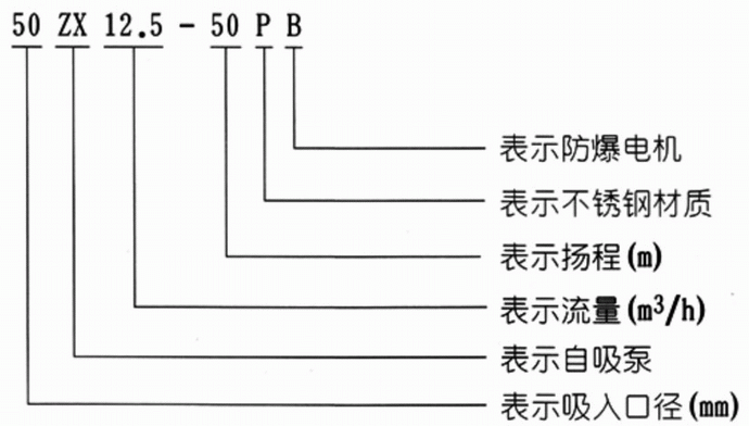 ZXB型防爆自吸泵型號說明:2、適用于清水、海水及帶有酸、堿度的化工介質(zhì)液體和帶有一般糊狀的漿料(介質(zhì)粘度≤100厘珀、含固量可達30%以下)。