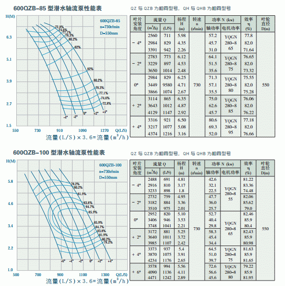 QH型潛水混流泵主要特點(diǎn)是大流量、低揚(yáng)程、效率高。驅(qū)動(dòng)水泵的電動(dòng)機(jī)為干式全封閉潛水三項(xiàng)異步電動(dòng)機(jī),水泵與電動(dòng)機(jī)同軸一體,可長(zhǎng)期潛入水下運(yùn)行。由于水泵與電機(jī)一體,同時(shí)潛入水中,不但安裝方便、快速,還可以大大簡(jiǎn)化泵站的土建件結(jié)構(gòu),減少安裝占地面積,節(jié)約泵站土建工程造價(jià)??刹捎枚喾N安裝方式,主要用于農(nóng)田排灌、船塢升降水位、城市給排水、防洪和市政、水利工程等工況。尤其適用于解決水位漲落大的沿江、湖泊地區(qū)站防洪問(wèn)題。