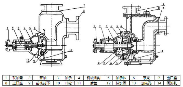 2、在一些泵的軸承體底部還設(shè)有冷卻室。當(dāng)軸承發(fā)熱致使軸承體溫升跨過(guò)70℃,可在冷卻室處經(jīng)過(guò)縱情一只冷卻液管接頭,注人冷卻液循環(huán)冷卻。泵內(nèi)部避免液體由高壓區(qū)向低壓區(qū)走漏的密封組織是前后密封環(huán),前密封環(huán)裝在泵體上,后密封環(huán)裝在軸承體上,當(dāng)泵經(jīng)長(zhǎng)時(shí)間工作密封環(huán)磨損到必定程度,并影響到泵的功率和自吸功用時(shí),應(yīng)給予替換。