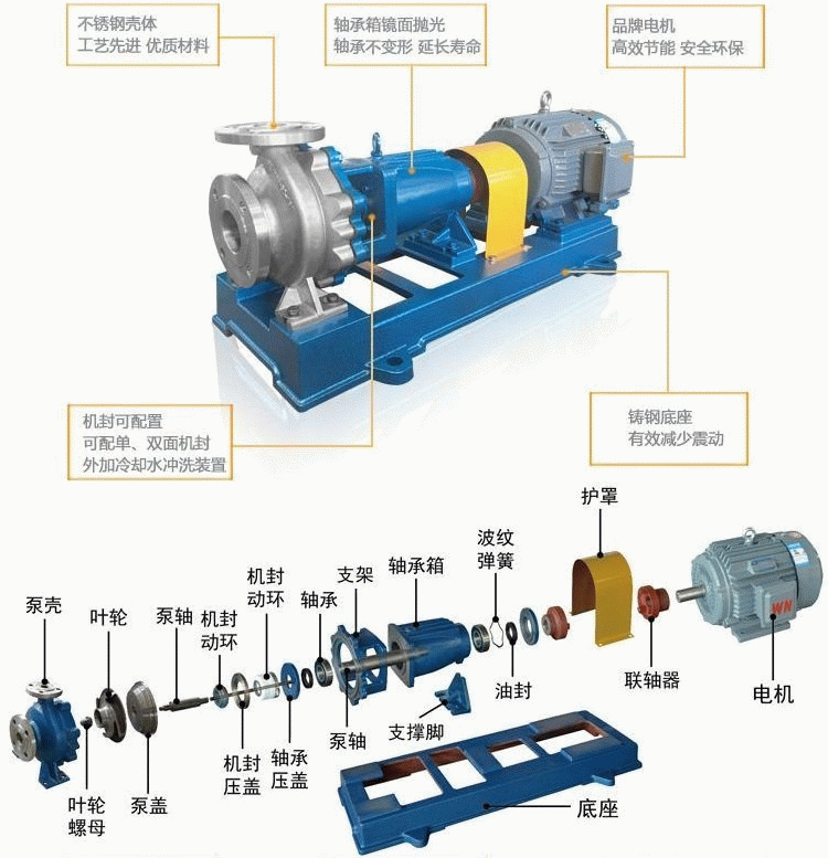 二、與IH型泵相比,HJ型泵結構具有以下特點: