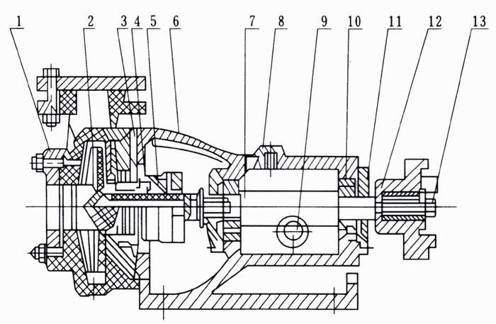 1、FSB型襯氟離心泵由泵體、葉輪、合蓋、密封件、支架、泵軸、邊軸器、吊緊螺栓、螺母、底板組成。