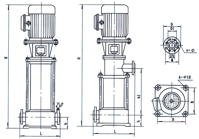 GDLF型不銹鋼多級離心泵安裝尺寸圖: