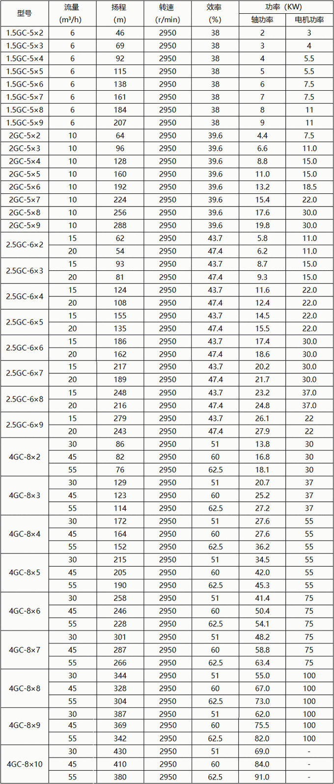 GC型臥式鍋爐給水多級離心泵產(chǎn)品參數(shù):